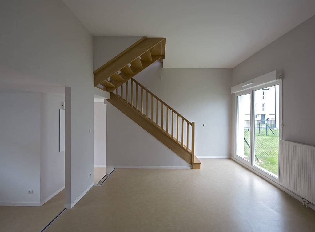 Ce projet est le résultat d’un concours organisé par la commune d’Épinay-sur-Seine et Terralia dans le cadre du dispositif « maisons à 100 000 € ». En réponse aux exigences économiques, l’expression volumétrique du projet est contenue et rigoureuse, garantissant une cohérence architecturale et une possibilité d’appropriation par les acquéreurs. La maison repose sur un principe architectural de demi-niveaux à hauteurs variables. Ces différences autorisent une hauteur sous plafond de 3,20 m dans le séjour.