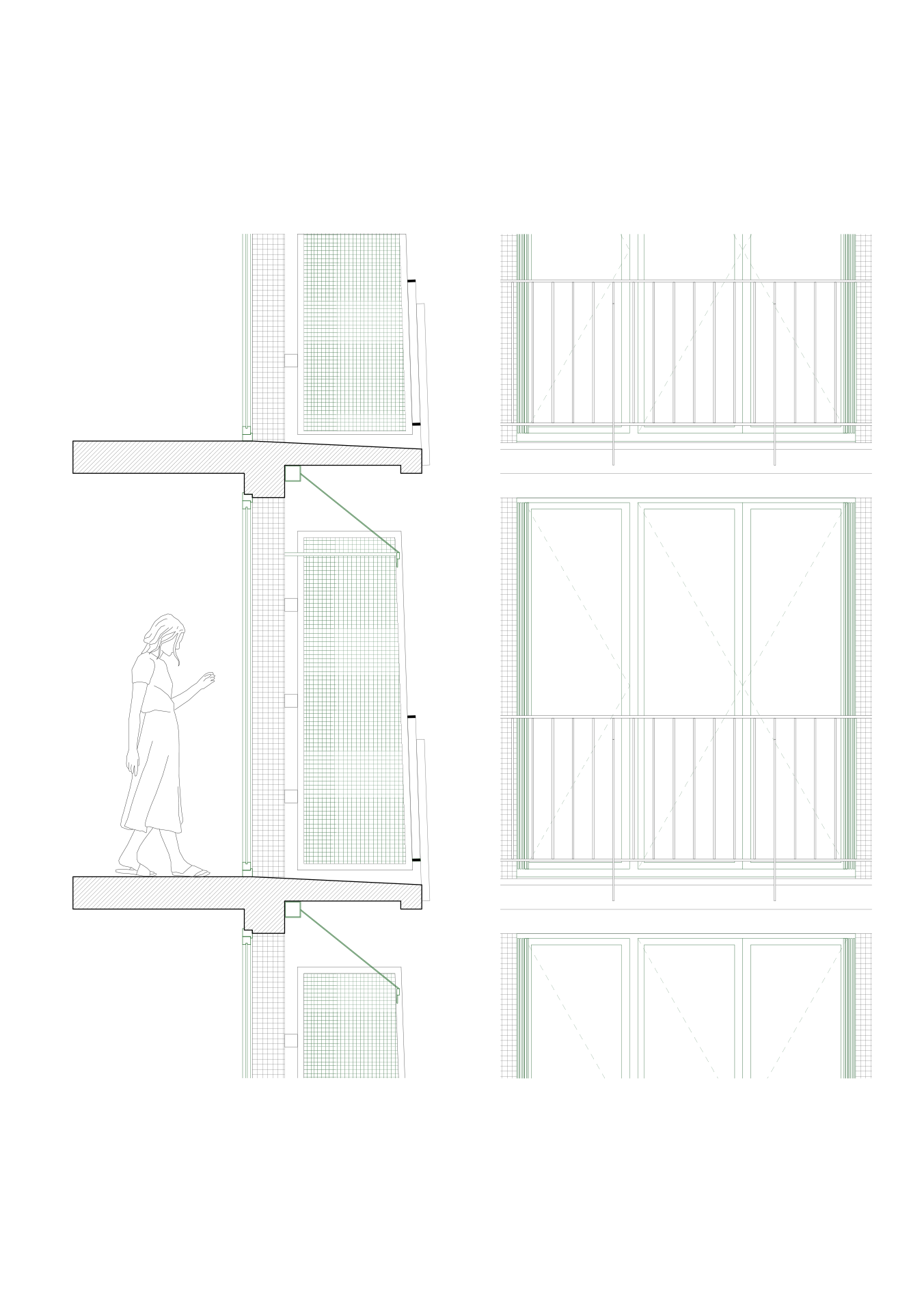 Les menuiseries PVC existantes seront remplacées par des menuiseries de type bois-alu, avec vitrage isolant à double vitrage et les anciens séchoirs seront isolés et fermés de façon homogène.