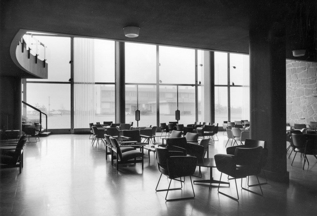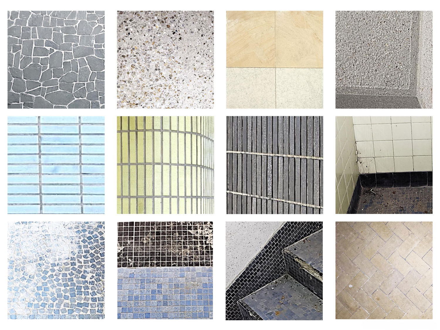 Les bétons, les parements en pierre ainsi que les faïences bleus, jaunes et noires, sont restaurés et mis en valeur.