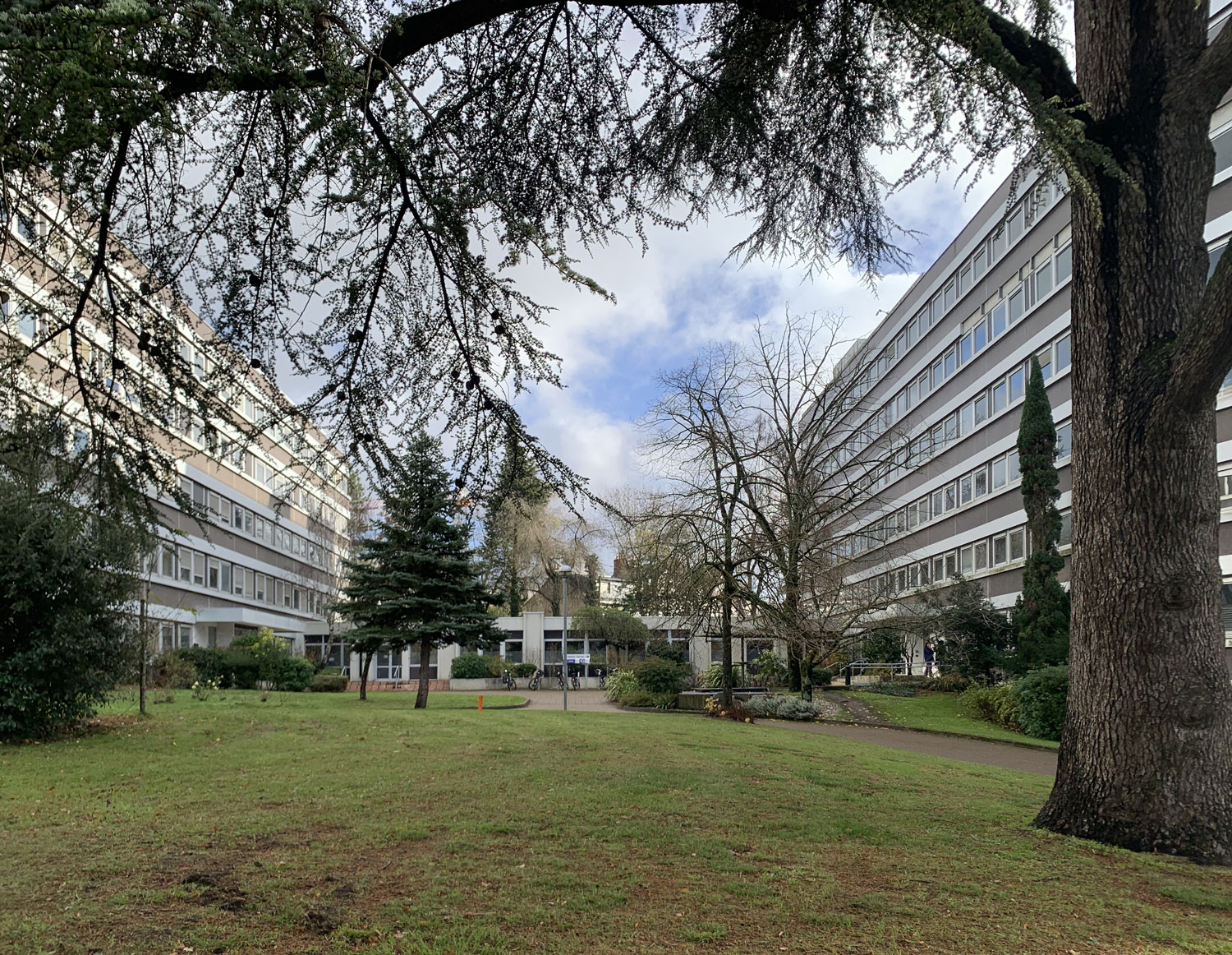 Afin de desservir de façon plus efficace les logements, trois noyaux de circulation sont implantés. Dans le corps central des bâtiments, la trame structurelle des noyaux et des espaces techniques est creusée pour créer deux courettes, qui permettent à la fois d’éclairer les paliers et les escaliers, mais aussi d’offrir des dispositions traversantes aux logements implantés en trames centrales.