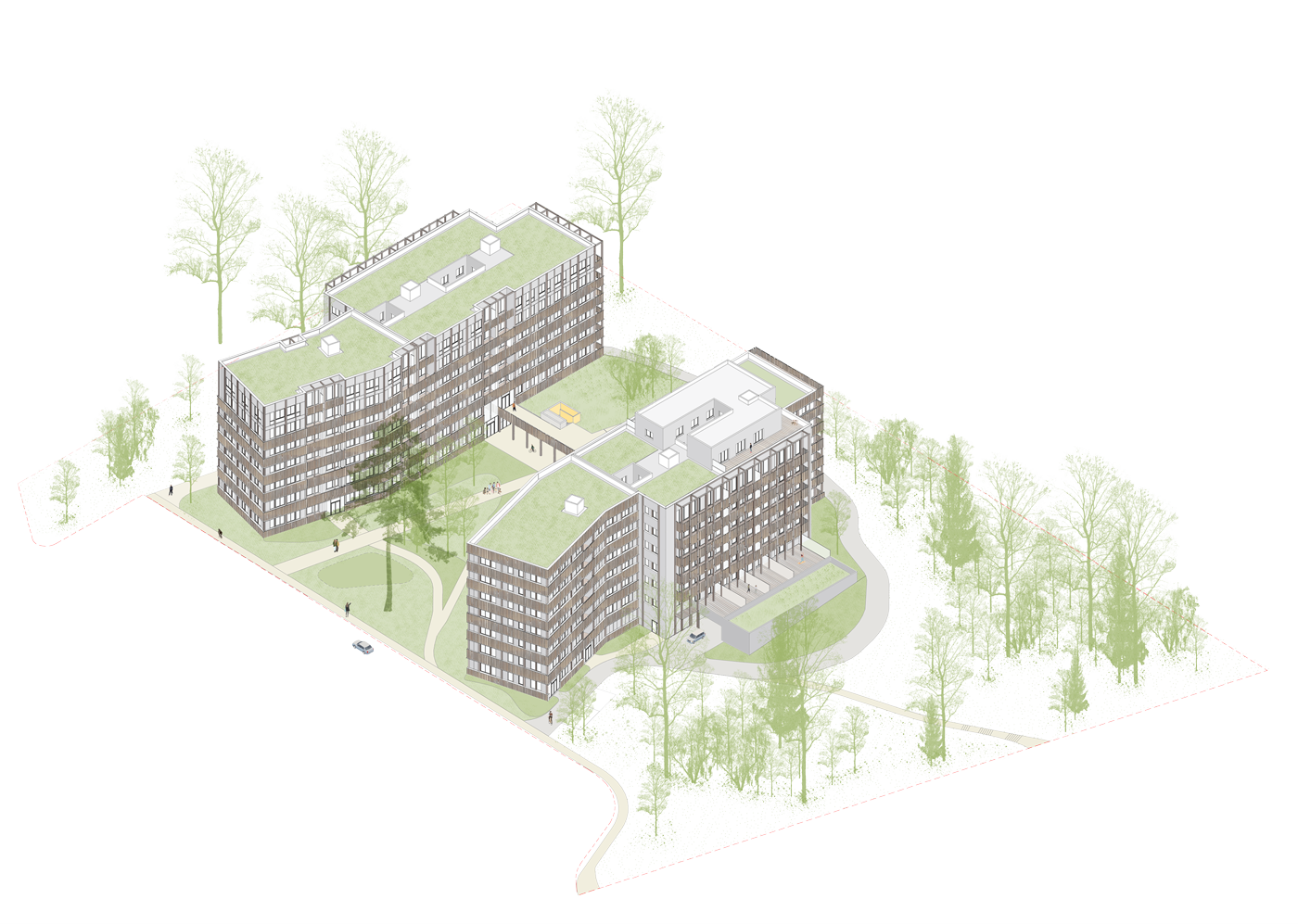 La future résidence tire parti au maximum de la végétation alentour et des grands arbres historiques.